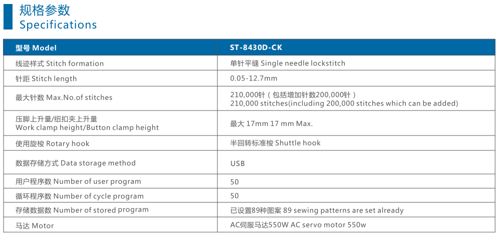 基于ST-8430D電子套結機基礎上開發的菊花眼沖孔機,最高轉速可達到3200轉每分鐘。